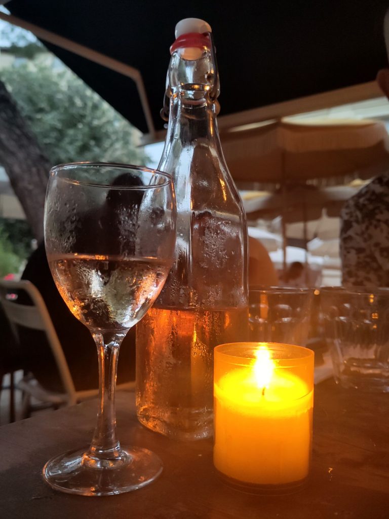 Vielleicht kann ich den morgentlichen flow aufs Festland retten? So wie im Übrigen die zwei Flaschen *griechischen Weins* die ich gerade beim Chef geordert habe. Aber dann ist der Koffer voll. Wie üblich viel zuviel von vorn herein eingepackt. Eventuell passt doch noch eine Lage Oliven rein ? Ich gehe in den Laden. Zum Baden ist am 1.11. nun zu kalt – obwohl… komm einmal noch.