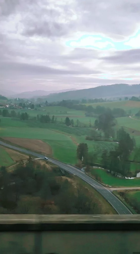 Ich rase gerade im ICE durch blühende Landschaften. Die Sonne kommt durch den Nebel, ein zartes Grün zeigt sich.